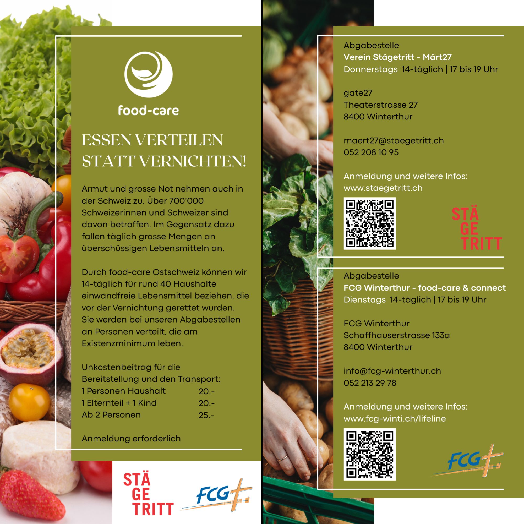 Bei food-care Schweiz können wir 14-täglich für rund 35 Haushalte einwandfreie Lebensmittel beziehen,